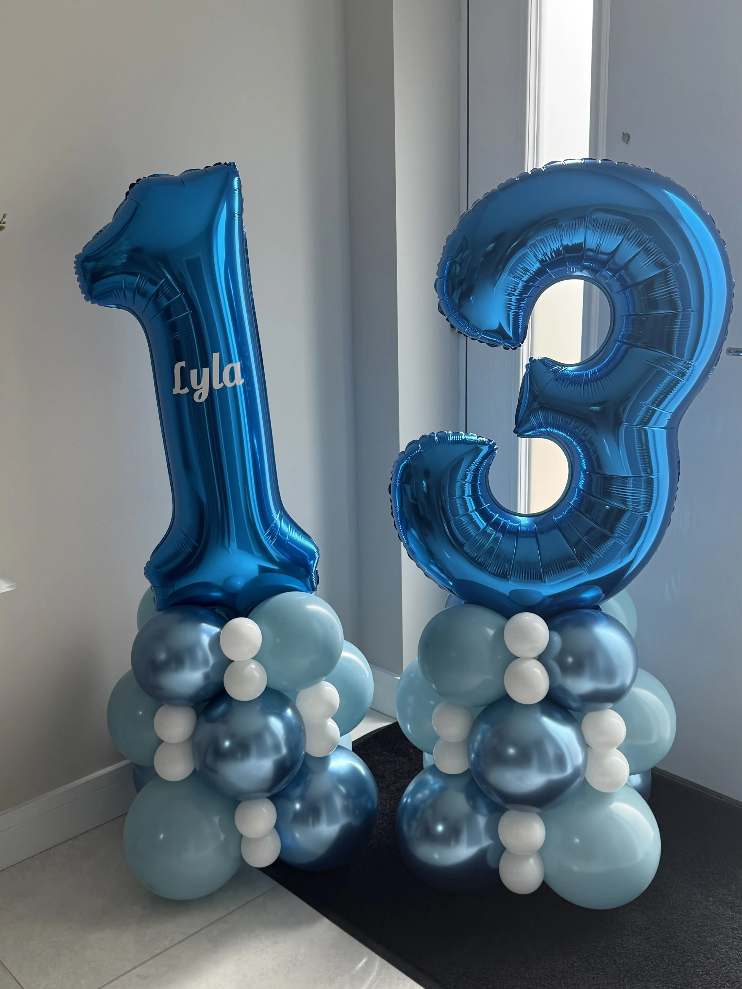 Number stacks are freestanding balloon displays available in single or double digits, created in your choice of colours to suit any celebration and make a bold focal point